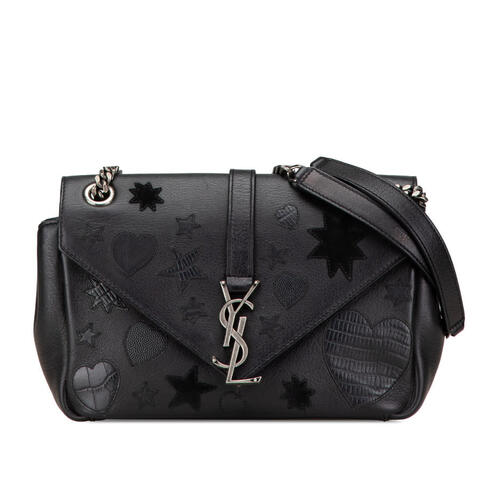 Pre-owned Saint Laurent Medium Monogram Heart Patchwork Chain Wallet crafted in quilted leather with an eye-catching patchwork design, chain straps with leather guards, a front flap with magnetic closure, and an interior slip pocket. This designer wallet on chain offers a chic balance of signature Saint Laurent elegance and practical organization in a compact silhouette. Measuring approximately 5.91 x 9.06 x 1.97 inches, it is an ideal choice for day-to-evening wear with luxury and contemporary style.<br /><br /> Designed for both fashion and functionality, this Saint Laurent chain wallet is a versatile accessory that keeps essentials close at hand while elevating any outfit. The iconic monogram detail, refined quilted finish, and convenient interior slip pocket make it a stylish option for carrying cards, cash, and small necessities. Whether paired with casual looks or dressier ensembles, this wallet on chain is perfect for everyday use.<br /><br /> Condition Rating: B+. Comments: Exterior Back Scratched. Exterior Front Scratched. Exterior Handle/Strap Cracked, Worn. Hardware Closure Rusty/Tarnished, Scratched. Hardware Embellishment Scratched. Interior Lining Worn, Stained With Others, Stained With Transfer of Color, Loose Stiching, Scratched. Inclusions: None. Model: Medium Monogram Heart Patchwork Chain Wallet. Item# QBPETE1056O7W4GM. This pre-owned Saint Laurent handbag remains a fashionable and collectible luxury piece for buyers seeking authentic designer accessories with character and value. This is a great opportunity to own an authentic handbag at a more accessible price.