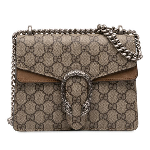 The pre-owned Gucci Small GG Supreme Dionysus Crossbody Ladies 421970 204991 is a timeless designer handbag that blends iconic appeal with everyday elegance. Crafted with a durable coated canvas body and finished with suede leather trim, this Gucci Dionysus Crossbody showcases the houses signature style in a compact, versatile silhouette. The silver-tone chain strap and top flap with magnetic snap button closure add polished detail, making it a standout accessory for anyone seeking luxury and contemporary style. <br /><br /> Designed for both fashion and functionality, this Gucci crossbody bag offers a practical size for carrying daily essentials while maintaining a sophisticated, elevated look. Measuring approximately 6.30 x 7.87 x 1.97 inches, it is ideal for day-to-night wear, and the included dust bag adds extra value for storage and care. Whether paired with casual outfits or dressier ensembles, this designer handbag is a stylish investment piece that is perfect for everyday use. <br /><br /> This authentic pre-owned Gucci Dionysus Crossbody is offered in Condition Rating: AB. Comments: Exterior Bottom Stained With Others. Exterior Front Stained With Others. Exterior Side Cracked. Interior Lining Stained With Others, Out of Shape. Inclusions: Dust bag. Model: Small GG Supreme Dionysus Crossbody. Item# ZNPPCT5NRHXQELTF. A refined choice for collectors and fashion lovers alike, this is a great opportunity to own an authentic handbag at a more accessible price.