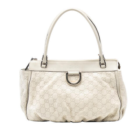 The pre-owned Gucci Guccissima Abbey D Ring Tote is a sophisticated designer handbag crafted from embossed leather, offering a timeless look with signature Gucci appeal. Featuring rolled leather handles, a secure top zip closure, and a spacious interior with both zip and slip pockets, this tote combines elegance with practicality for daily wear. Its structured silhouette and iconic detailing make it a standout accessory that reflects luxury and contemporary style.<br /><br /> Designed for both fashion and functionality, this Gucci tote offers ample space for your everyday essentials while maintaining a polished and versatile appearance. The embossed Guccissima leather adds texture and refinement, making it an excellent choice for work, shopping, or casual outings. With its classic design and convenient interior organization, this bag is perfect for everyday use.<br /><br /> Model: Guccissima Abbey D Ring Tote. Item# 2EU0H6RGOT1RUD6A. Dimensions (in): 10.43 x 12.80 x 2.95. Inclusions: None. Condition Rating: B+. Comments: Exterior Back Scratched, Stained With Others, Worn. Exterior Corners Worn. Exterior Front Scratched. Exterior Handle/Strap Stained With Others, Worn. Exterior Side Worn, Stained With Others, Stained With Transfer of Color. Exterior Top Stained With Others. Hardware Practical Attachment Scratched. Zipper Scratched. Pre-owned Gucci Guccissima Abbey D Ring Tote Ladies 189831 205027. This is a great opportunity to own an authentic handbag at a more accessible price.