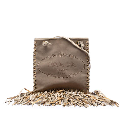 Pre-owned Prada Canvas and Leather Fringed Canapa Logo Crossbody Ladies X70P0EL6RKGXUGMG (LPN397665)