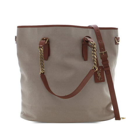 The Saint Laurent Large Canvas Shopping Tote is a chic and practical designer handbag crafted from durable canvas with refined leather trim. It features curb chain straps with a leather guard, a detachable and adjustable flat leather strap, an open top, and an interior zip pocket for added organization. With dimensions of 12.60 x 16.14 x 6.30 inches, this spacious satchel offers ample room for daily essentials while showcasing luxury and contemporary style.<br /><br /> Designed for both fashion and functionality, this Saint Laurent tote is an ideal choice for work, travel, shopping, or daily errands. The versatile design and roomy interior make it easy to carry everything you need, while the elegant combination of canvas, leather, and chain details adds a polished finish to any outfit. Its timeless silhouette and designer appeal make it perfect for everyday use.<br /><br /> This pre-owned Saint Laurent Large Canvas Shopping Tote is a smart option for buyers seeking authentic luxury at a more attainable value. Inclusions: Shoulder Strap, Charm. Model: Large Canvas Shopping Tote. Item# LGRA14CAXZCWFZRM. Pre-owned Saint Laurent Large Canvas Shopping Tote Ladies TCT781302-0124. Condition Rating: B+. Comments: Exterior Back Scratched, Stained With Others. Exterior Bottom Scratched. Exterior Corners Worn. Exterior Front Stained With Others, Discolored. Exterior Handle/Strap Scratched, Loose Stiching, Creased. Zipper Scratched. Interior Lining Scratched. This is a great opportunity to own an authentic handbag at a more accessible price.