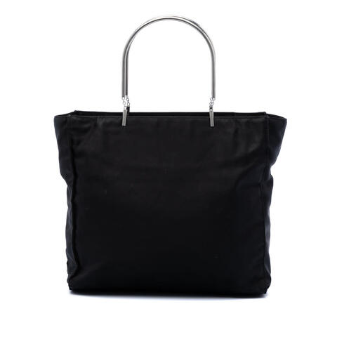 The pre-owned Prada Tessuto Metal Handle Bag is a chic and versatile designer tote that blends iconic craftsmanship with everyday appeal. Crafted from durable nylon with sleek silver-toned metal top handles, this Prada handbag offers a lightweight yet polished look that complements a wide range of outfits. Its open top and thoughtfully designed interior zip pockets provide easy access and practical organization, making it a stylish choice for anyone who appreciates luxury and contemporary style.<br /><br /> Designed for both fashion and functionality, this Prada Tessuto Metal Handle Bag measures approximately 11.02 inches long, 11.42 inches high, and 2.76 inches wide, offering a convenient size for daily essentials without feeling bulky. The refined silhouette, signature Prada design, and functional interior make it an excellent option for work, shopping, or casual outings, perfect for everyday use.<br /><br /> This authentic pre-owned Prada handbag is identified as Model: Tessuto Metal Handle Bag, Item# CX1CJA84GRZFQHM2, and includes no additional inclusions. Condition Rating: B+. Comments: Exterior Back Stained With Others. Exterior Bottom Stained With Others. Exterior Corners Stained With Others. Exterior Front Stained With Others. Exterior Side Stained With Others. Exterior Top Stained With Others. Hardware Practical Attachment Scratched. Zipper Scratched. This is a great opportunity to own an authentic handbag at a more accessible price.