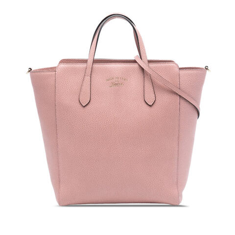 The Gucci Leather Swing Convertible Tote is a refined and versatile satchel crafted from premium leather, featuring flat leather handles, a detachable flat leather strap, a secure top zip closure, and interior zip and slip pockets for organized storage. Sized at 12.80 x 10.43 x 4.33 inches, this elegant designer handbag offers a spacious yet structured silhouette that easily complements both casual and polished looks, making it an excellent choice for anyone seeking luxury and contemporary style.<br /><br /> Designed for both fashion and functionality, this pre-owned Gucci tote offers the flexibility of carrying it by hand or wearing it over the shoulder with the included detachable shoulder strap. Its thoughtfully designed interior and practical size make it ideal for carrying daily essentials while maintaining a sophisticated designer appeal, making it perfect for everyday use.<br /><br /> This authentic pre-owned Gucci Leather Swing Convertible Tote, model 368824 204991, includes the shoulder strap and remains a stylish investment for any luxury handbag collection. Condition Rating: B+. Pre-owned condition notes: Exterior back stained with others and creased; exterior bottom stained with others; exterior corners worn; exterior front stained with others; exterior handle/strap creased and stained with others; exterior side stained with others; exterior top stained with others and scratched; hardware practical attachment scratched; zipper scratched; interior lining stained with others. Item# QHNSMDX3I7EOZWZ6. This is a great opportunity to own an authentic handbag at a more accessible price.