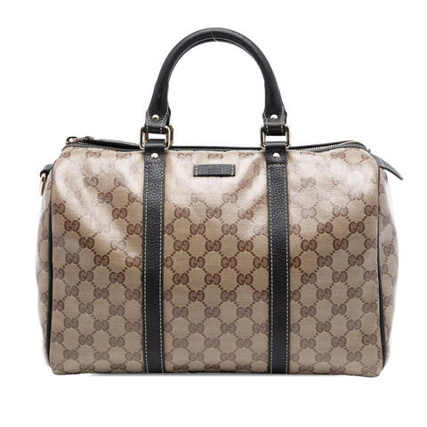 The Gucci Medium GG Crystal Joy Boston Bag is a chic and timeless designer handbag crafted from durable coated canvas with elegant leather trim. It features rolled leather handles, a secure top zip closure, and an interior slip pocket for easy organization. With dimensions of 7.87 x 12.60 x 6.69 inches, this medium Boston bag offers a stylish silhouette that blends everyday practicality with luxury and contemporary style.<br /><br /> Designed for both fashion and functionality, this pre-owned Gucci Medium GG Crystal Joy Boston Bag is an excellent choice for anyone seeking a sophisticated handbag with versatile appeal. The iconic GG Crystal canvas and refined leather details make it easy to pair with both casual and polished looks, while the spacious interior provides room for your daily essentials, perfect for everyday use.<br /><br /> This authentic pre-owned Gucci handbag is model 265697 002404, Item# 8TX0I79UCQLLGOGI, and includes no additional inclusions. Condition Rating: AB. Comments: Exterior Back Worn. Exterior Bottom Stained With Others. Exterior Corners Worn. Exterior Front Worn. Exterior Handle/Strap Worn. Exterior Side Worn. Exterior Top Stained With Others. Hardware Practical Attachment Scratched. Zipper Scratched. This is a great opportunity to own an authentic handbag at a more accessible price.