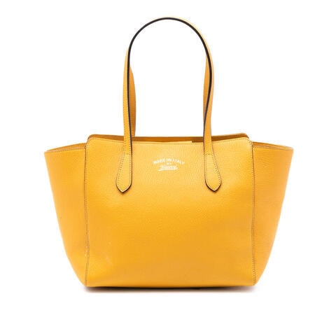 Pre-owned Gucci Medium Dollar Calfskin Swing Tote Ladies 354408 204991 is a timeless designer handbag crafted from supple dollar calfskin leather with a sleek, versatile silhouette. The Swing tote bag features a leather body, flat leather shoulder straps, an open top with magnetic closure, and interior zip and slip pockets. Sized at 9.45 x 10.63 x 5.51 inches, this elegant Gucci tote offers the ideal balance of practicality and sophistication, making it a standout choice for anyone seeking luxury and contemporary style.<br /><br /> Designed for both fashion and functionality, this Gucci Medium Dollar Calfskin Swing Tote is spacious enough to carry your daily essentials while maintaining a polished, refined look. The open top with magnetic closure allows for easy access, while the interior zip and slip pockets help keep your belongings organized throughout the day. Whether you're heading to work, shopping, or meeting friends, this authentic Gucci handbag is a chic and reliable accessory that is perfect for everyday use.<br /><br /> Condition Rating: B+. Comments: Exterior Back Worn. Exterior Bottom Stained With Others. Exterior Corners Worn. Exterior Front Stained With Others. Exterior Handle/Strap Worn. Exterior Side Stained With Others. Hardware Closure Scratched. Zipper Scratched. Interior Lining Stained With Others. Inclusions: None. Model: Medium Dollar Calfskin Swing Tote. Item# 3NEFUCB203FP7CMX. This pre-owned Gucci tote remains a stylish and desirable luxury piece for collectors and fashion lovers alike. This is a great opportunity to own an authentic handbag at a more accessible price.