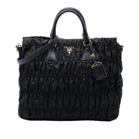 The Prada Tessuto Gaufre Satchel is a chic and versatile designer handbag crafted from gathered nylon with rolled leather handles, a detachable leather strap, a top zip closure, and convenient interior zip and slip pockets. Its spacious silhouette and signature Prada appeal make it an elegant choice for carrying your essentials in style, offering a polished look that blends luxury and contemporary style.<br /><br /> Designed for both fashion and functionality, this pre-owned Prada satchel offers the flexibility of handheld or shoulder wear, making it a practical option for day-to-day outings, work, or travel. The thoughtfully designed interior pockets help keep your belongings organized, while the lightweight nylon body adds comfort and ease, making it perfect for everyday use.<br /><br /> This authentic pre-owned Prada Tessuto Gaufre Satchel includes a name tag and shoulder strap. Handles have been repainted. Condition Rating: B+. Comments: Exterior Back Scratched, Stained With Others, Creased. Exterior Bottom Creased, Stained With Others. Exterior Front Stained With Others, Creased, Scratched. Exterior Handle/Strap Creased, Repainted, Stained With Others. Exterior Side Stained With Others. Hardware Practical Attachment Scratched. Zipper Rusty/Tarnished, Scratched. Interior Lining Stained With Others. Model: Tessuto Gaufre Satchel. Item# M74609EZITEQEE44. Pre-owned Prada Tessuto Gaufre Satchel Ladies M74609EZITEQEE44. This is a great opportunity to own an authentic handbag at a more accessible price.