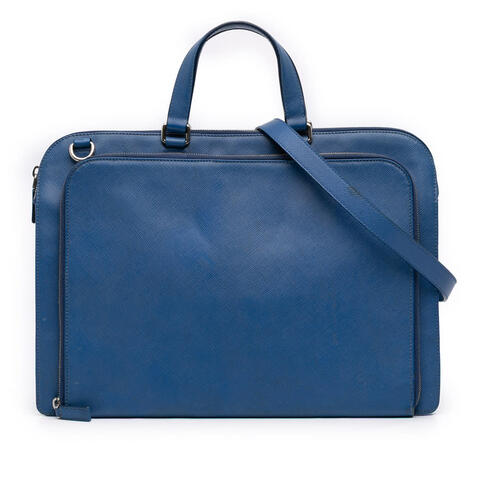 Pre-owned Prada Saffiano Cuir Travel Front Zip Pocket Briefcase Unisex 68JB3SQH6SWW2UBY (LPN398024)