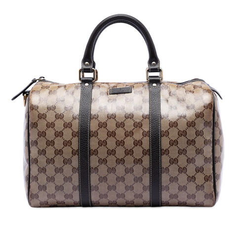 The Gucci Medium GG Crystal Joy Boston Bag is a chic and timeless designer accessory, crafted with a durable coated canvas body, elegant leather trim, rolled leather handles, a secure top zip closure, and an interior slip pocket for added convenience. With dimensions of 8.66 x 12.99 x 6.69 inches, this pre-owned Gucci handbag offers a stylish silhouette that is ideal for carrying your daily essentials while showcasing luxury and contemporary style.<br /><br /> Designed for both fashion and functionality, this authentic Gucci Medium GG Crystal Joy Boston Bag for ladies combines signature designer appeal with practical storage, making it a versatile addition to any wardrobe. Its classic Boston bag shape, comfortable rolled handles, and secure zip-top design make it easy to carry from day to night, perfect for everyday use.<br /><br /> This pre-owned Gucci Medium GG Crystal Joy Boston Bag is rated B+ and shows signs of wear consistent with gentle previous use. Comments: Exterior Back Stained With Others, Creased. Exterior Bottom Stained With Others. Exterior Corners Worn. Exterior Front Stained With Others, Creased. Exterior Handle/Strap Stained With Others, Worn. Exterior Side Worn. Exterior Top Creased. Hardware Practical Attachment Scratched. Zipper Rusty/Tarnished, Scratched. Interior Lining Cut Stitching, Stained With Others. Interior Pocket Stained With Others. Inclusions: None. Model: Medium GG Crystal Joy Boston Bag. Item# F8QU03QFNFL5HONI. Pre-owned Gucci Medium GG Crystal Joy Boston Bag Ladies 265697 493075. This is a great opportunity to own an authentic handbag at a more accessible price.
