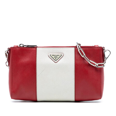 Pre-owned Prada Bicolor Saffiano Lux Crossbody Ladies VHFMPGXQYLHPT5DZ is a chic designer handbag crafted from durable saffiano leather, offering a refined look with lasting appeal. This Prada crossbody bag features a detachable chain strap with a leather guard, a secure top zip closure, and a thoughtfully organized interior with zip and slip pockets for your essentials. Its compact dimensions of 5.12 x 9.25 x 2.36 inches make it an elegant choice for day-to-night wear, blending luxury and contemporary style.<br /><br /> Designed for both fashion and functionality, this authentic Prada handbag is an ideal accessory for carrying your everyday necessities while maintaining a polished, sophisticated appearance. The striking bicolor design adds modern visual interest, while the structured silhouette and practical interior compartments enhance convenience and versatility. Whether paired with casual looks or elevated ensembles, this crossbody is perfect for everyday use.<br /><br /> Condition Rating: B+. Comments: Exterior Back Creased, Stained With Others. Exterior Bottom Stained With Others. Exterior Corners Stained With Others, Worn. Exterior Front Stained With Others, Creased. Exterior Handle/Strap Creased, Cracked. Exterior Side Stained With Others. Exterior Top Stained With Others, Cracked. Hardware Practical Attachment Scratched. Zipper Scratched. Interior Lining Stained With Others. Interior Pocket Stained With Others. Inclusions: Authenticity card. Model: Bicolor Saffiano Lux Crossbody. Item# VHFMPGXQYLHPT5DZ. This pre-owned Prada crossbody remains a stylish and desirable luxury piece for collectors and fashion lovers alike. This is a great opportunity to own an authentic handbag at a more accessible price.