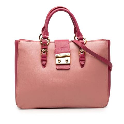 Pre-owned Miu Miu Bicolor Madras Leather Convertible Lock Tote Ladies RKNCT3AVIU2ZQRMS is a chic designer handbag crafted from luxurious goatskin leather, featuring rolled handles, a detachable flat shoulder strap, and an open top with a signature metal lock closure. With interior zip and slip pockets, this Miu Miu tote offers stylish organization in a silhouette that blends elegance with practicality. Measuring 10.04 x 13.39 x 3.15 inches, it is a refined accessory that captures luxury and contemporary style.<br /><br /> Designed for both fashion and functionality, this authentic Miu Miu Bicolor Madras Leather Convertible Lock Tote is an excellent choice for carrying your essentials with ease. The versatile design allows it to be worn by hand or over the shoulder, while the thoughtfully designed interior helps keep your belongings secure and organized. Its timeless satchel shape and distinctive two-tone leather finish make it a standout addition to any wardrobe, perfect for everyday use.<br /><br /> Condition Rating: B+. Comments: Exterior Back Stained With Others. Exterior Bottom Stained With Others, Worn. Exterior Corners Worn. Exterior Front Stained With Others. Exterior Handle/Strap Stained With Transfer of Color, Stained With Others, Worn. Exterior Side Stained With Others, Worn. Exterior Top Cracked, Stained With Others, Worn. Hardware Closure Rusty/Tarnished, Scratched. Hardware Practical Attachment Rusty/Tarnished, Scratched. Zipper Scratched, Rusty/Tarnished. Interior Lining Stained With Others, Worn. Interior Pocket Stained With Others. Inclusions: Shoulder Strap. Model: Bicolor Madras Leather Convertible Lock Tote. Item# RKNCT3AVIU2ZQRMS. This pre-owned handbag shows visible signs of wear consistent with gentle use, making it a smart option for buyers seeking authentic designer style and value. This is a great opportunity to own an authentic handbag at a more accessible price.