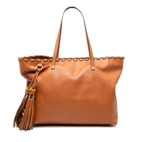 The pre-owned Gucci Leather Peggy Braided Tote is a sophisticated designer handbag crafted from calf leather and accented with elegant tassel detailing. Featuring flat leather straps, an open top with a magnetic snap closure, and a spacious interior with zip and slip pockets, this Gucci tote offers both style and practicality for daily wear. Its generous dimensions of 11.81 x 15.75 x 7.09 inches make it an excellent choice for carrying your essentials with luxury and contemporary style.<br /><br /> Designed for both fashion and functionality, this authentic Gucci Leather Peggy Braided Tote is a versatile handbag that complements a wide range of wardrobes. The refined braided design, included charm, and roomy interior make it ideal for work, shopping, or casual outings, while the premium leather construction reflects the timeless appeal of Gucci craftsmanship. This designer tote is a stylish and practical accessory that is perfect for everyday use.<br /><br /> This pre-owned Gucci tote is rated B+ condition. Comments: Exterior Back Stained With Others. Exterior Bottom Stained With Others. Exterior Corners Worn. Exterior Front Worn, Stained With Others, Split. Exterior Handle/Strap Cracked, Worn. Exterior Top Worn. Hardware Closure Scratched, Rusty/Tarnished. Hardware Practical Attachment Scratched. Zipper Rusty/Tarnished, Scratched. Interior Lining Worn. Inclusions: Charm. Model: Leather Peggy Braided Tote. Item# 4KOVA86NC3GPJ2MR. Pre-owned Gucci Leather Peggy Braided Tote Ladies 354666 493492. This is a great opportunity to own an authentic handbag at a more accessible price.