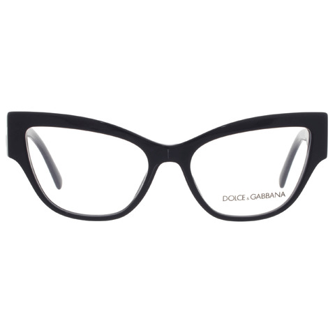 Dolce and Gabbana Eyeglasses. Series number: DG3378. Color code: 501. Shape: Cat Eye. Lens Width: 55 mm. Lens Bridge: 17 mm. Arm Length: 145 mm. Frame Material: Acetate. Frame Color: Black. Lenses Type: Demo. Rim Style: Full-Rim. UPC/EAN code: 8056597948531. Dolce and Gabbana Demo Cat Eye Ladies Eyeglasses DG3378 501 55.<br/><br/>Manufacturer's Packaging Included. Packaging Size And Color May Vary.