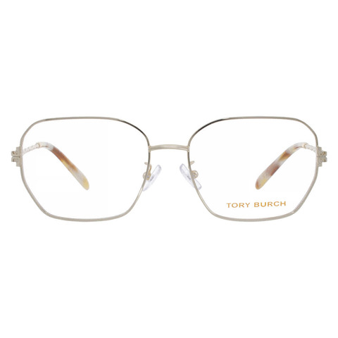 Tory Burch Eyeglasses. Series number: TY1087. Color code: 3343. Shape: Irregular. Lens Width: 53 mm. Lens Height: 42 mm. Lens Bridge: 16 mm. Arm Length: 140 mm. Frame Material: Metal. Frame Color: Shiny Gold. Lenses Type: Demo. UPC/EAN code: 725125518888. Tory Burch Demo Irregular Ladies Eyeglasses TY1087 3343 53.<br/><br/>Manufacturer's Packaging Included. Packaging Size And Color May Vary.