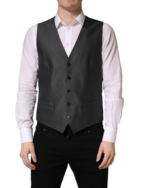 Dolce & Gabbana Dark Gray Single Breasted Men Waistcoat Vest - IT58 | 3XL - TSH91918-58 (LPN398906)