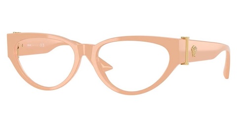 Versace Eyeglasses. Series number: VE3366. Color code: 5495. Shape: Cat Eye. Lens Width: 55 mm. Lens Height: 38 mm. Lens Bridge: 16 mm. Arm Length: 140 mm. Frame Material: Acetate. Frame Color: Nude Brown. Lenses Type: Demo. Rim Style: Full-Rim. UPC/EAN code: 8056262224243. Versace Demo Cat Eye Ladies Eyeglasses VE3366 5494 55.<br/><br/>Manufacturer's Packaging Included. Packaging Size And Color May Vary.