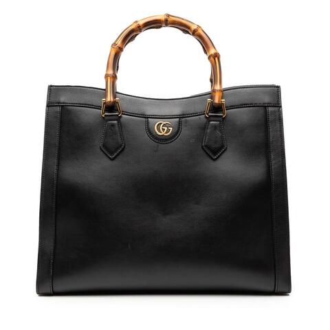 The Gucci Medium Bamboo Calfskin Diana Tote is a timeless designer handbag crafted from luxurious calfskin leather and finished with the houses iconic bamboo top handle. This elegant satchel features an open top with magnetic snap and flap closure, along with interior zip and slip compartments for organized storage. With dimensions of 11.42 x 13.78 x 5.31 inches, it offers a refined silhouette that blends luxury and contemporary style.<br /><br /> Designed for both fashion and functionality, this pre-owned Gucci Diana Tote is an exceptional choice for women seeking a sophisticated handbag that complements both casual and polished looks. The spacious interior, secure compartments, and signature bamboo detailing make it a standout accessory, while the included dust bag adds extra value for storage and care. Its versatile design makes it perfect for everyday use.<br /><br /> Condition Rating: AB. Comments: Exterior Back Stained With Others, Creased. Exterior Bottom Stained With Others. Exterior Front Stained With Others, Creased. Exterior Side Stained With Others. Exterior Top Stained With Others. Hardware Closure Scratched. Hardware Embellishment Scratched. Hardware Practical Attachment Rusty/Tarnished, Scratched. Zipper Scratched. Interior Lining Stained With Others. Interior Pocket Stained With Others. Inclusions: Dust bag. Model: Medium Bamboo Calfskin Diana Tote. Item# LOMEHWGGM8ML7MDC. Pre-owned Gucci Medium Bamboo Calfskin Diana Tote Ladies 655658 520981. This is a great opportunity to own an authentic handbag at a more accessible price.