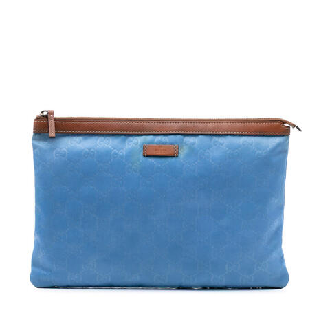 Pre-owned Gucci GG Nylon Top Zip Clutch Ladies 286209 002404. This elegant Gucci clutch bag features a durable nylon body with refined leather trim and a secure top zip closure, offering a sleek designer look in a compact silhouette. Measuring approximately 7.87 x 11.81 x 0.39 inches, it is ideal for carrying your daily essentials while showcasing luxury and contemporary style.<br /><br /> Designed for both fashion and functionality, this Gucci GG Nylon Top Zip Clutch is a versatile accessory that complements both casual and polished outfits. The lightweight construction, signature GG nylon design, and practical zip-top closure make it a stylish choice for organizing essentials on the go, perfect for everyday use.<br /><br /> Condition Rating: B+. Comments: Exterior Back Stained With Transfer of Color. Exterior Corners Worn. Exterior Front Stained With Transfer of Color, Stained With Others. Exterior Side Stained With Others, Stained With Transfer of Color. Zipper Rusty/Tarnished, Scratched. Inclusions: None. Model: GG Nylon Top Zip Clutch. Item# EV3LDSGK8ORMZP7Y. This authentic pre-owned Gucci clutch is a smart choice for shoppers seeking iconic designer style with value. This is a great opportunity to own an authentic handbag at a more accessible price.