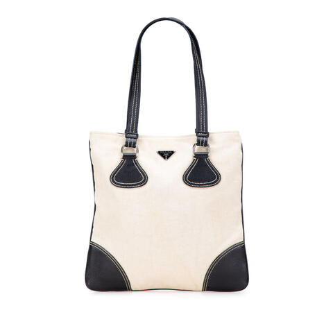 Pre-owned Prada Vitello Trimmed Canvas Canapa Tote Ladies EXDB2VGQI1KGUUUT (LPN399120)