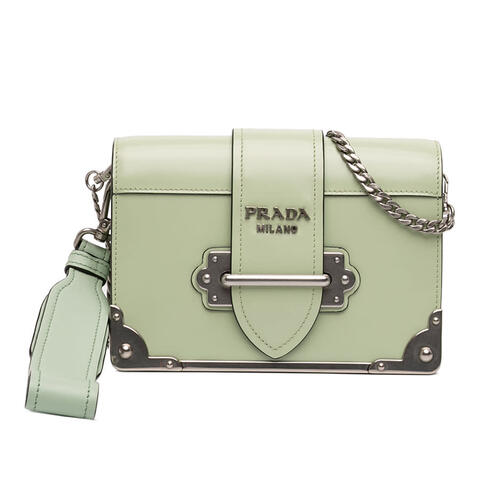 The Prada Spazzolato Soft Calfskin Cahier Crossbody is a chic and sophisticated handbag that blends iconic design with modern appeal. Crafted from glossy patent leather, this elegant crossbody features a structured silhouette, a detachable chain-link shoulder strap, and a distinctive front flap with a pull-through closure for a polished finish. Compact yet statement-making, it measures approximately 4.72 inches high, 7.09 inches wide, and 1.97 inches deep, making it an ideal choice for carrying your essentials with luxury and contemporary style.<br /><br /> Designed for both fashion and functionality, this pre-owned Prada Cahier Crossbody is a versatile accessory that transitions effortlessly from day to evening. Its refined size and timeless design make it easy to pair with both casual and dressy looks, while the detachable strap offers flexible styling options. Complete with a dust bag, authenticity card, and shoulder strap, this designer handbag is a stylish and practical addition to any collection, perfect for everyday use.<br /><br /> This pre-owned Prada Spazzolato Soft Calfskin Cahier Crossbody is rated B+ and remains a desirable luxury piece for any handbag lover. Comments: Exterior Back Stained With Others, Discolored. Exterior Bottom Creased, Out of Shape. Exterior Corners Worn. Exterior Front Stained With Others, Discolored. Exterior Handle/Strap Scratched. Exterior Side Out of Shape, Creased. Hardware Closure Scratched. Hardware Embellishment Scratched. Hardware Practical Attachment Scratched. Interior Lining Stained With Others. Item# SU0XA40PQAIYV0NC. This is a great opportunity to own an authentic handbag at a more accessible price.