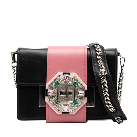 The Prada City Calf Crystal Embellished Ribbon Bag is a chic pre-owned crossbody handbag that blends standout detailing with timeless designer appeal. Crafted from leather and accented with elegant crystal embellishments, this sophisticated bag features a detachable chain link strap with a leather guard, a front flap with a twist lock closure, and an interior slip pocket for your essentials. With dimensions of 5.51 x 7.87 x 2.56 inches, it offers a compact yet stylish silhouette that captures luxury and contemporary style.<br /><br /> Designed for both fashion and functionality, this pre-owned Prada crossbody bag is an excellent choice for day-to-night wear. Its refined structure, signature embellishments, and practical interior pocket make it ideal for carrying small everyday necessities while elevating any outfit with designer charm. Whether paired with casual looks or dressed-up ensembles, this authentic Prada handbag is perfect for everyday use.<br /><br /> Model: City Calf Crystal Embellished Ribbon Bag. Item# 3VBOOJD58XB3CCIE. Inclusions: None. Condition Rating: B+. Comments: Exterior Back Scratched. Exterior Bottom Worn, Creased. Exterior Corners Worn. Exterior Front Creased, Scratched. Exterior Handle/Strap Cracked. Exterior Side Creased, Cracked. Hardware Closure Scratched. Hardware Embellishment Damaged. Interior Lining Scratched, Stained With Others. Interior Pocket Stained With Others. This pre-owned Prada City Calf Crystal Embellished Ribbon Bag offers a stylish way to enjoy authentic designer fashion while shopping more consciously. This is a great opportunity to own an authentic handbag at a more accessible price.