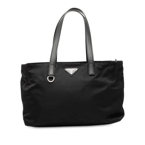 The Prada Saffiano Trimmed Tessuto Tote is a stylish and versatile designer handbag crafted with a durable nylon body and accented by elegant flat saffiano leather straps. Featuring a secure top zip closure and a practical interior zip pocket, this tote offers the ideal balance of sophistication and convenience for daily wear. With its sleek silhouette and signature Prada appeal, this bag is a refined choice for anyone who appreciates luxury and contemporary style.<br /><br /> Designed for both fashion and functionality, this pre-owned Prada tote provides ample space with dimensions of 8.66 x 11.81 x 5.71 inches, making it a smart option for carrying your daily essentials with ease. The combination of lightweight tessuto nylon and saffiano leather trim gives it a polished yet durable design that transitions effortlessly from workdays to weekends. Its timeless look and practical storage make it perfect for everyday use.<br /><br /> This authentic pre-owned Prada Saffiano Trimmed Tessuto Tote for ladies is an excellent addition to any luxury handbag collection. Model: Saffiano Trimmed Tessuto Tote. Item# BAHV2B71KKZEHVAF. Condition Rating: B+. Comments: Exterior Back Stained With Others. Exterior Corners Worn. Exterior Front Stained With Others. Exterior Handle/Strap Worn, Stained With Others, Cracked. Exterior Side Stained With Others. Exterior Top Worn. Hardware Closure Rusty/Tarnished, Scratched. Hardware Embellishment Scratched. Hardware Practical Attachment Scratched. Zipper Scratched, Rusty/Tarnished. Interior Lining Stained With Others. Interior Pocket Stained With Others. Inclusions: None. This is a great opportunity to own an authentic handbag at a more accessible price.
