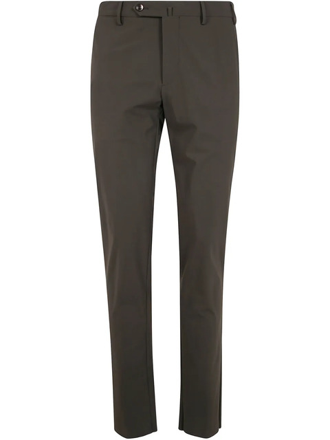 olive green concealed front button, hook and zip fastening belt loops two side welt pockets two rear jetted pockets