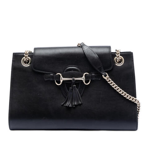 The Gucci Large Leather Emily Shoulder Bag is a timeless designer accessory that blends elegance with versatility. Crafted from premium leather, this spacious shoulder bag features signature chain straps with flat leather shoulder guards, a front flap with slip-through closure, and interior zip and open pockets for organized storage. With its refined silhouette and iconic Gucci appeal, this bag is an excellent choice for anyone seeking luxury and contemporary style.<br /><br /> Designed for both fashion and functionality, this pre-owned Gucci Emily shoulder bag offers ample space for daily essentials while maintaining a polished and sophisticated look. Its generous dimensions of 9.84 x 14.17 x 3.54 inches make it ideal for carrying everything from your wallet and phone to small personal items, making it perfect for everyday use.<br /><br /> This authentic Pre-owned Gucci Large Leather Emily Shoulder Bag, model 295403 527066, is a stylish and practical addition to any luxury handbag collection. Condition Rating: B+. Comments: Exterior Back Worn, Creased, Scratched. Exterior Bottom Creased, Scratched, Worn, Stained With Others. Exterior Corners Worn. Exterior Front Stained With Others, Creased, Scratched. Exterior Handle/Strap Worn, Scratched, Out of Shape. Exterior Side Creased, Stained With Others. Exterior Top Scratched, Stained With Others. Hardware Practical Attachment Scratched. Zipper Scratched. Interior Lining Scratched, Stained With Others. Interior Pocket Stained With Others. Inclusions: None. Item# PJTFQ3RYI0Y9MJDJ. This is a great opportunity to own an authentic handbag at a more accessible price.