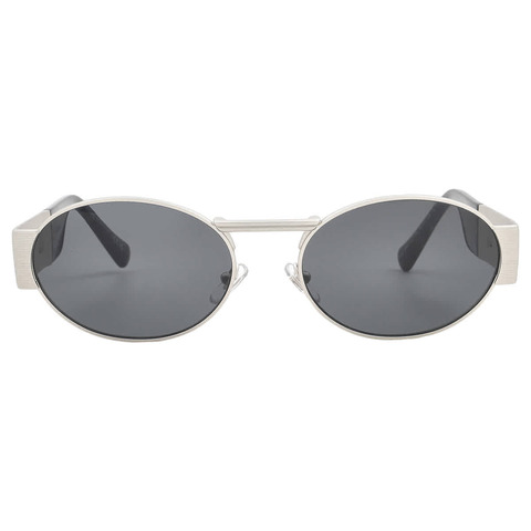 Versace Sunglasses. Series number: VE2264. Color code: 151387. Shape: Oval. Lens Width: 56 mm. Lens Bridge: 18 mm. Arm Length: 140 mm. 100% UV protection. Non-Polarized. Frame Material: Metal. Frame Color: Silver. Lenses Type: Dark Grey. Rim Style: Full-Rim. UPC/EAN code: 8056262009802. Versace Dark Grey Oval Unisex Sunglasses VE2264 151387 56.<br/><br/>Manufacturer's Packaging Included. Packaging Size And Color May Vary.