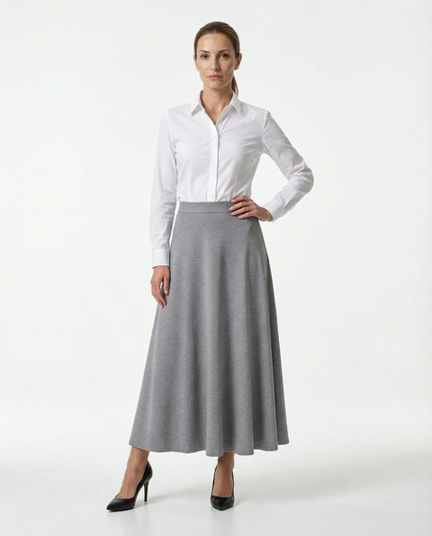 Brunello Cucinelli Gray Cotton Long Skirt - IT42|M - BR-MPR24G3679C235-IT42|M (LPN400351)