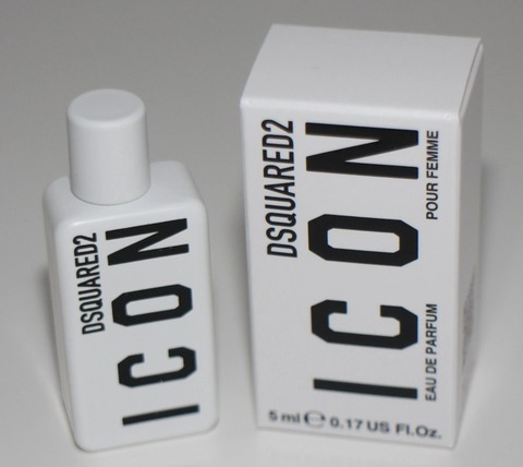 Launch year: 2024. Fragrance Family: Floral Woody Musk. Top notes: Citrus, Pink pepper. Heart notes: Jasmine, Praline. Base notes: Sandalwood, Vanilla, Musk. Design house: Dsquared2. Design house category: fashion. Design house country: Canada. Scent name: Icon. Gender: Ladies. Category: Fragrance. SubType: EDP. Size: 0.16 oz. Barcode: 8011003895687. Dsquared2 Ladies Icon EDP 0.16 oz Fragrances 8011003895687. <br/><br/> This item is only valid for shipment in the Contiguous United States & Canada.