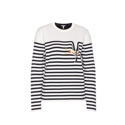 – Composition: 1% Elastane 99% Wool – Long sleeves – Ribbed trims – Crew neck – Hand wash – Dropped shoulders – Penguin embroidery at chest – White and navy wool blend – Made in Italy – Gender: WOMEN –