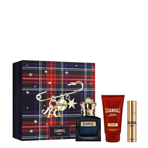 Launch year: 2025. Fragrance Family: Woody Aromatic. Top notes: Clary Sage. Heart notes: Vetiver. Base notes: Leather. Design house: Jean Paul Gaultier. Design house category: fashion. Design house country: France. Scent name: Scandal Pour Homme Intense. Gender: Mens. Category: Fragrance. SubType: Gift Set. Barcode: 8435415113243. Jean Paul Gaultier Scandal Pour Homme Intense (M) Set Edp 100Ml + Swg 75Ml + Edp 10Ml. Jean Paul Gaultier Mens Scandal Pour Homme Intense 3pcs EDP Gift Set Fragrances 8435415113243. <br/><br/> This item is only valid for shipment in the Contiguous United States & Canada.