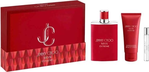 Launch year: 2024. Fragrance Family: Woody Aromatic. Top notes: Red thyme, Black pepper. Heart notes: Sage, Geranium, Nutmeg. Base notes: Woody notes. Design house: Jimmy Choo. Design house category: fashion. Design house country: United Kingdom. Scent name: Man Extreme. Gender: Mens. Category: Fragrance. SubType: Gift Set. Barcode: 3386460167451. EDP 100ml & Shower Gel 100ml & Travel Spray 7.5ml. Jimmy Choo Mens Man Extreme Gift Set Fragrances 3386460167451. <br/><br/> This item is only valid for shipment in the Contiguous United States & Canada.