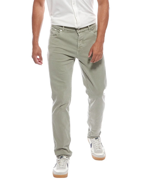 Elevate your wardrobe with Brunello Cucinelli’s men’s pants—where sophistication meets comfort. These sage-hued pants blend fine craftsmanship with a contemporary edge, making them a must-have for the fashion-forward man. Expertly crafted in Italy, they offer a refined fit with a touch of stretch for unparalleled ease. Perfect for both casual outings and upscale gatherings, these pants embody the bold, trendy aesthetic synonymous with Brunello Cucinelli.