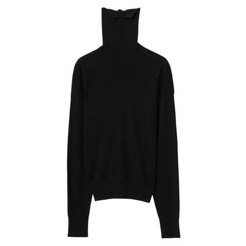 Burberry Ladies Tops. Fashion category: Cardigans & Sweaters. SKU: 8095310. Color: Black. Burberry EKD Wool Rollneck Sweater. This oversized wool rollneck sweater features rib-knit trims, exposed shoulder seams, and a knitted Equestrian Knight Design at the hem for a stylish, lightweight look. 100% Wool.