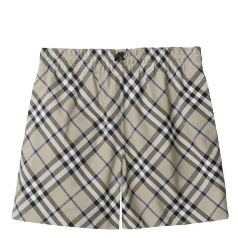 Burberry Ladies Bottoms. Fashion category: Shorts. SKU: 8088289. Color: Lichen Ip Check. Burberry Equestrian Knight Check Cotton Shorts. These cotton shorts are crafted in a twill weave with a classic check pattern. Designed with an elasticated drawstring waistband, they feature a rear zip pocket and an embroidered Equestrian Knight motif at the back, finished with a thigh-length cut and straight hem. Cotton 100%.