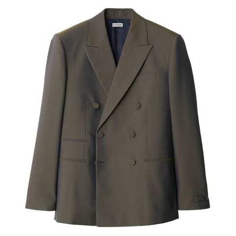 Burberry Mens Outerwear. Fashion category: Coats & Jackets. SKU: 8086739. Color: Reef. Burberry Double-Breasted Wool Blazer. This wool-silk blend blazer features contrast stitching, peak lapels, and a double-breasted button fastening. It has long sleeves with buttoned cuffs, a chest welt pocket, and two side welt pockets, all finished with a sleek logo plaque for a refined touch. 100% Wool. Made in Italy.