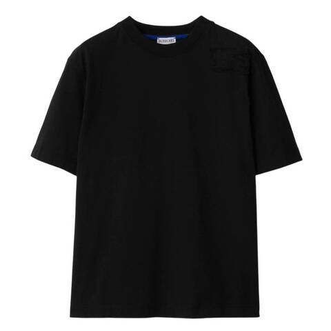 Burberry Ladies Tops. Fashion category: T-Shirts & Henleys. SKU: 8084969. Color: Black. Burberry Crew-Neck Cotton Jersey T-Shirt. This cotton jersey T-shirt from Burberry features a relaxed fit and a tonal Equestrian Knight Design applique at the front. Part of Burberry Classics, it is finished with a rib-knit crew neckline for a comfortable and timeless look. 100% cotton. Trim: 97% cotton, 3% elastane. Made in Portugal.