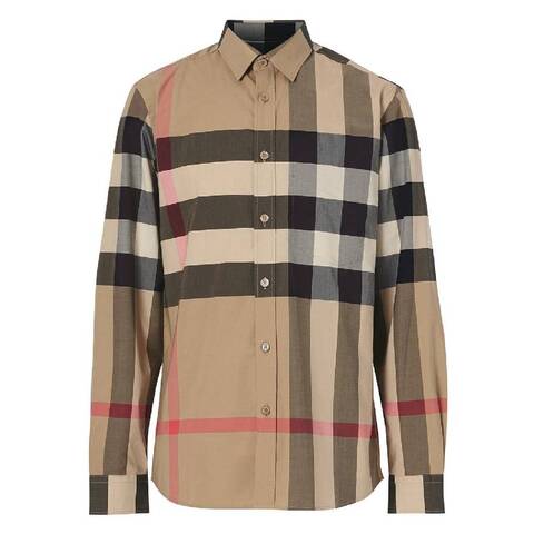 Burberry Mens Tops. Fashion category: Shirts & Blouses. SKU: 8010213. Color: Archive Beige Ip Chk. Burberry Somerton Vintage Check Casual Long Sleeve Shirt. This shirt features a check print, a pointed collar, a front button fastening, long sleeves, button cuffs, and a slim fit. Cotton 95%, Spandex/Elastane 5%.