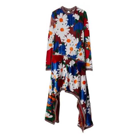 Burberry Ladies Dresses. Fashion category: Cocktail & Party Dresses. SKU: 8087778. Color: Red/White Ip Pattern. Burberry Daisy Garden Print Velvet Dress. Crafted in Italy, the Daisy Garden dress is jacquard-woven with British garden florals, including daisies and poppies. Cut to a regular fit, it features a striking open-back silhouette with a press-stud closure and a zipped waist for a defined shape. Long sleeves and a flowing handkerchief hem complete the elegant, sculptural design. 92% Viscose; 5% Polyamide; 3% Elastane. Made in Italy.