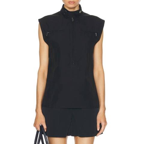 Burberry Ladies Tops. Fashion category: Shirts & Blouses. SKU: 8088152. Color: Black. Burberry Half-Zip Sleeveless Cotton Top. This sleeveless top is crafted from cotton poplin and cut to a regular fit. It features a press-stud collar and zip detailing inspired by motocross jackets and punk influences for a bold, modern finish. 100% cotton.