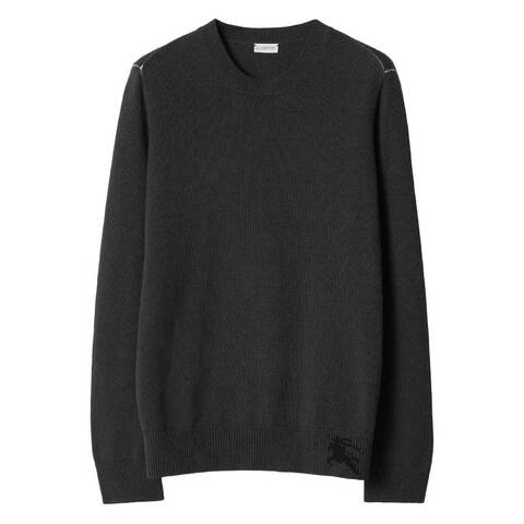 Burberry Mens Tops. Fashion category: Cardigans & Sweaters. SKU: 8081131. Color: Onyx. Burberry Equestrian Knight Motif Cashmere Sweater. This sweater features a fine knit construction, beautifully accented with the distinctive 'Equestrian Knight' logo, a classic round neck, long sleeves, and a straight hem, offering a seamless blend of elegance and timeless style. 100% Cashmere. Made in United Kingdom.