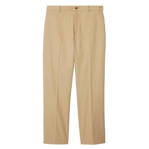 Burberry Mens Bottoms. Fashion category: Pants & Leggings. SKU: 8095735. Color: Flax. Burberry EKD Logo Cotton Tailored Trousers. These trousers are crafted from Italian-woven cotton and tailored to a regular fit. They feature a button-and-zip closure, side slip pockets, and a back welt pocket, finished with an embroidered Equestrian Knight Design at the back pocket. 100% cotton.