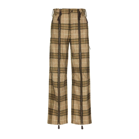 Burberry Mens Bottoms. Fashion category: Pants & Leggings. SKU: 8097466. Color: Camp Ip Check. Burberry Mens Check Wool Zip Trousers. These trousers are crafted from brushed wool woven with the signature Burberry Check and tailored to a relaxed fit. The design features adjustable front zip openings to customize the silhouette, along with a press-stud, button, and zip closure. Finished with side zip pockets and back welt pockets secured with press-studs, they balance heritage patterning with a modern, functional edge. 100% wool.