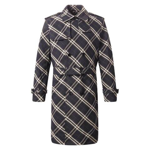 Burberry Mens Outerwear. Fashion category: Coats & Jackets. SKU: 8101230. Color: Indigo Ip Check. Burberry Check Long Belted Trench Coat. This double-breasted trench coat featuring an all-over check pattern. Designed with a hook-and-buckle collar and a throat lock for added sophistication, it includes shoulder trims, belted cuffs, and a B-shaped buckle waist belt for a tailored fit. Practical welt side pockets and rear slits provide comfort and mobility, making it the perfect blend of classic design and modern functionality. 100% Polyester.