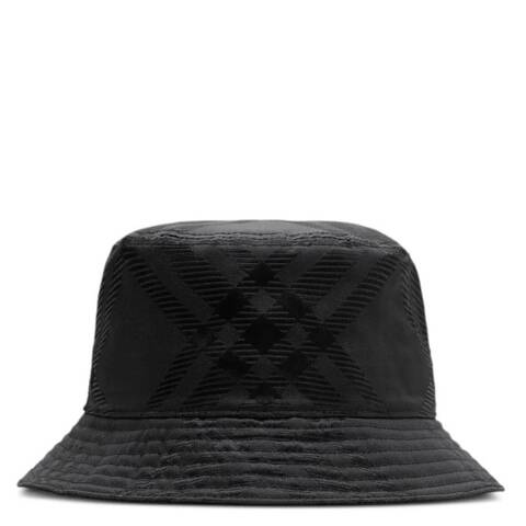 Burberry Mens Hats. Fashion category: Hats. SKU: 8095001. Color: Black. Burberry Tonal Bias Check Bucket Hat. A bucket hat featuring the House Check print, designed with a narrow brim and an easy slip-on style. 77% Polyamide, 23% Polyester. Made in Italy.