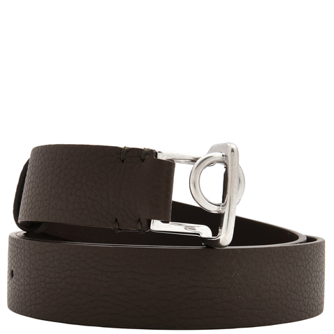 Burberry Mens Belts. Fashion category: Belts. SKU: 8085145. Color: Military. Burberry Leather Rocking Horse Belt. This calfskin leather belt is crafted from grainy texture leather, featuring a sleek logo clip and a palladium-plated metal ornament. The belt is designed with a palladium-plated 'B' buckle for a refined touch. The belt is finished with hand-painted edges, adding an extra layer of craftsmanship and sophistication. 3cm/1.2in wide. 100% calf leather. Made in Italy.