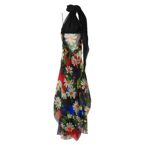Burberry Ladies Dresses. Fashion category: Evening & Formal Gowns. SKU: 8088785. Color: Black Ip Pattern. Burberry Daisy Garden Silk Blend Dress. This Burberry maxi dress is crafted from a luxurious silk blend and features a vibrant floral print. Designed with a halterneck tie fastening, an open back, and a sleeveless silhouette, it flows into an asymmetric hem for a graceful, contemporary finish. 87% Mulberry Silk; 13% Polyamide.