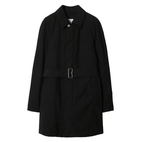 Burberry Ladies Outerwear. Fashion category: Coats & Jackets. SKU: 8095486. Color: Black. Burberry Short Single-Breasted Padded Car Coat. This car coat is crafted from Italian-woven nylon cotton faille and filled with goose down and feathers for warmth. Cut to a regular fit with raglan sleeves, it features a detachable B-buckle belt to adjust the silhouette, a single-breasted press-stud closure, side welt pockets, and a Burberry Check undercollar. Outer: 74% polyamide, 26% cotton. Filling: 90% goose down, 10% goose feathers. Wadding: 100% polyester fibres.