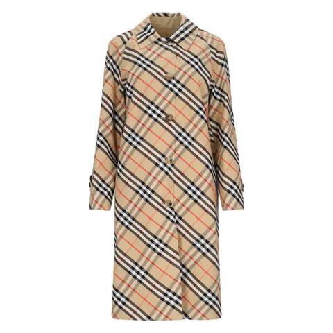 Burberry Ladies Outerwear. Fashion category: Coats & Jackets. SKU: 8093127. Color: Flax. Burberry Reversible Gabardine Car Coat. This long car coat is crafted from waterproof cotton gabardine and features a reversible design, with a solid exterior and a seasonal Burberry Check on the reverse. Cut to a relaxed silhouette with raglan sleeves, it includes exposed buttons, a single-breasted button closure, side welt pockets, and button-tab cuffs. Outer: 100% Cotton.